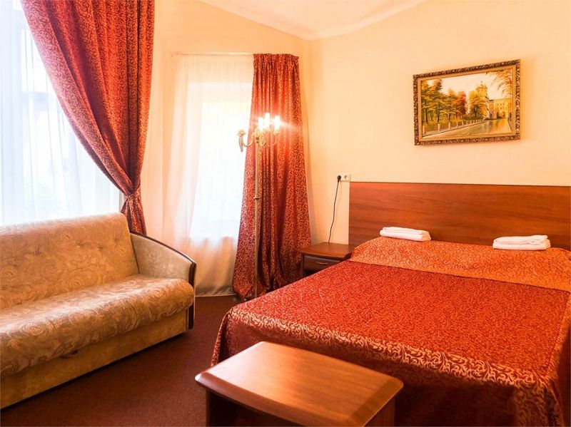 Гостиничный комплекс состоит из двух 3-х этажных корпусов, соединенных между собой переходами. Номерной фонд рассчитан на 80 человек и предлагает гостям комфортабельные номера разной категории от Стандарта до Люкса. Номера, в оформлении которых использованы классические оттенки, оснащены мебельным гарнитуром, санузлом с ванной или душем, телевизором, холодильником.